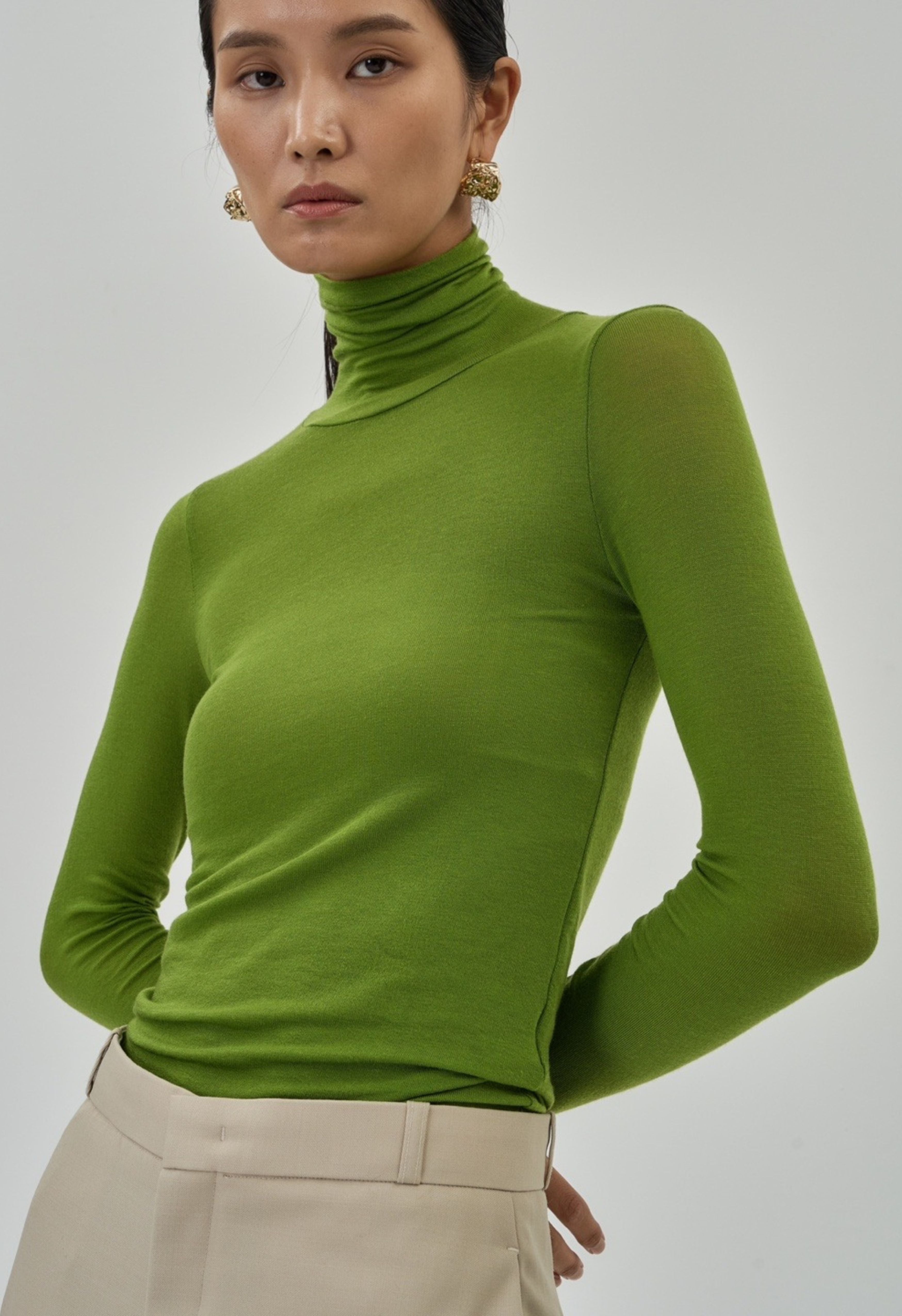 Jersey Turtleneck Top in Olive