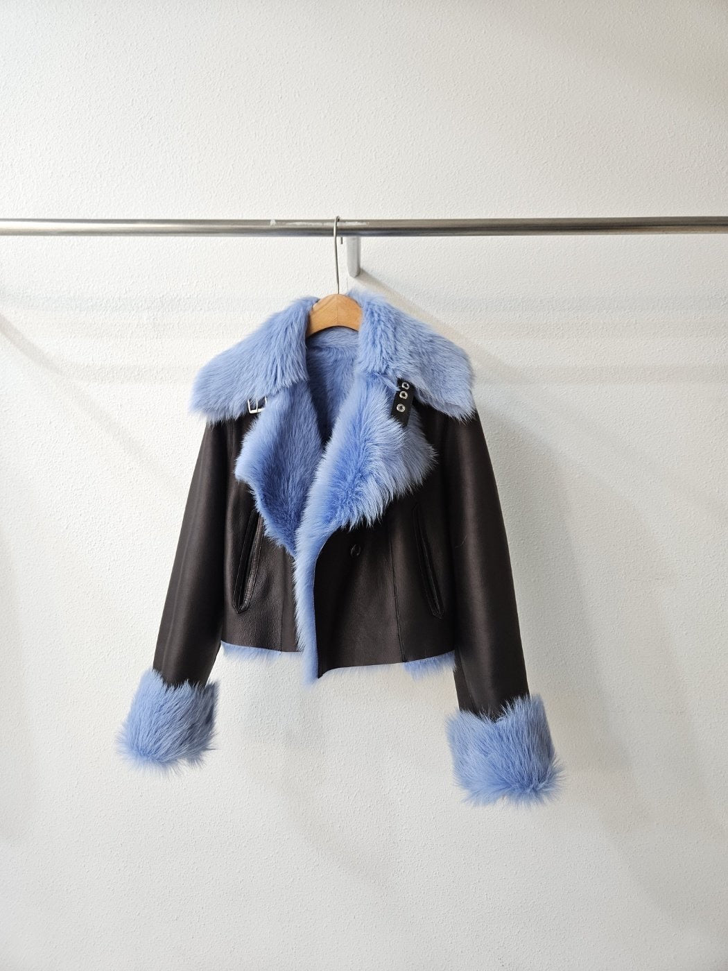 Blue and Black Reversible Lamb Shearling Jacket