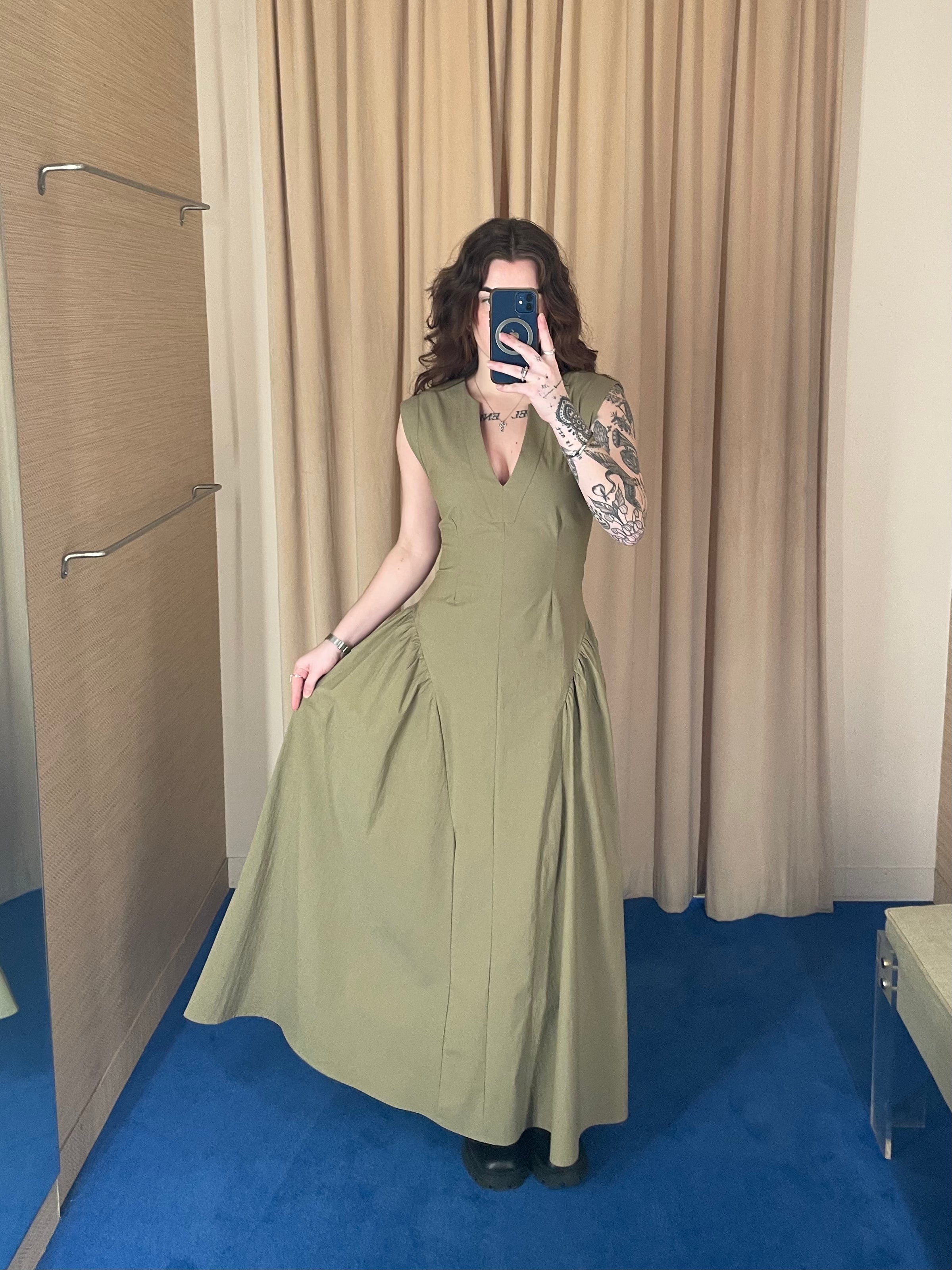 Inna Sleeveless Poplin Dress Green