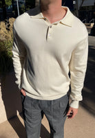 Theo Knit Long Sleeve Polo in Cream