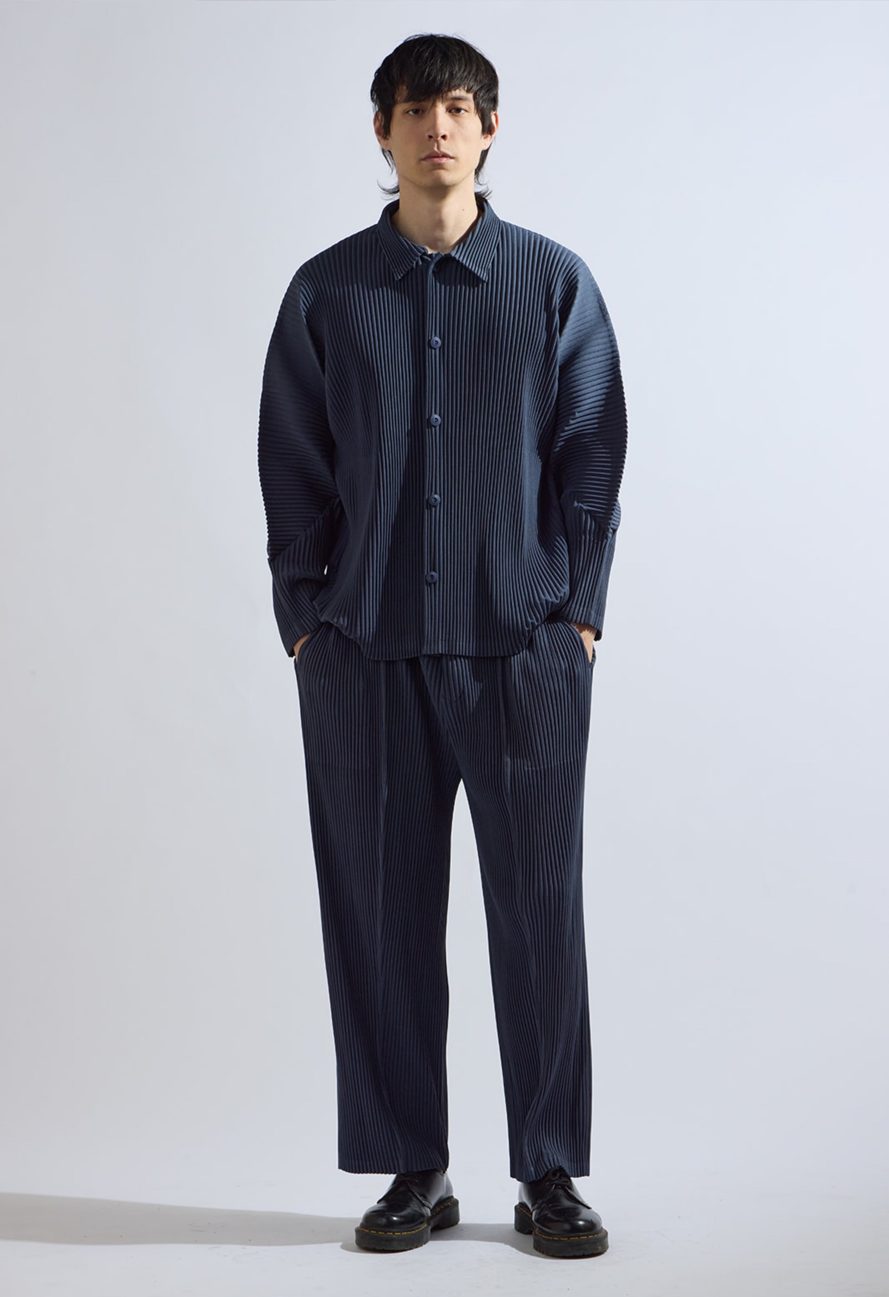 Pleated Long Sleeve in Navy