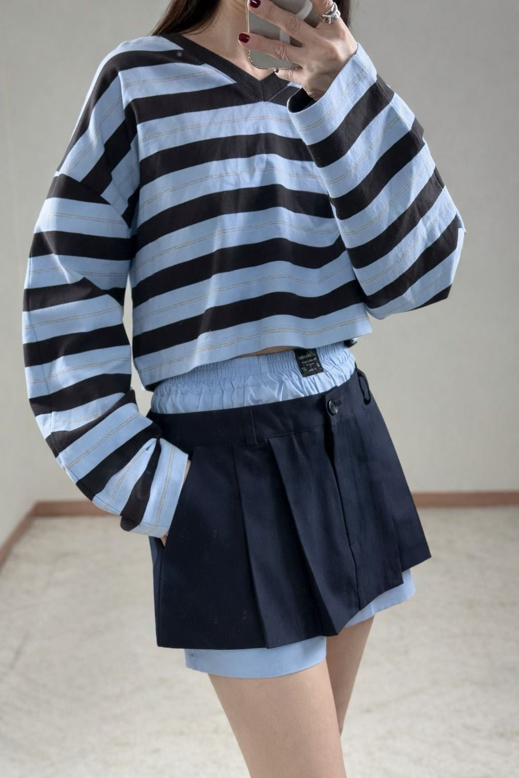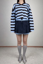 Crop Striped Long Sleeve in Blue