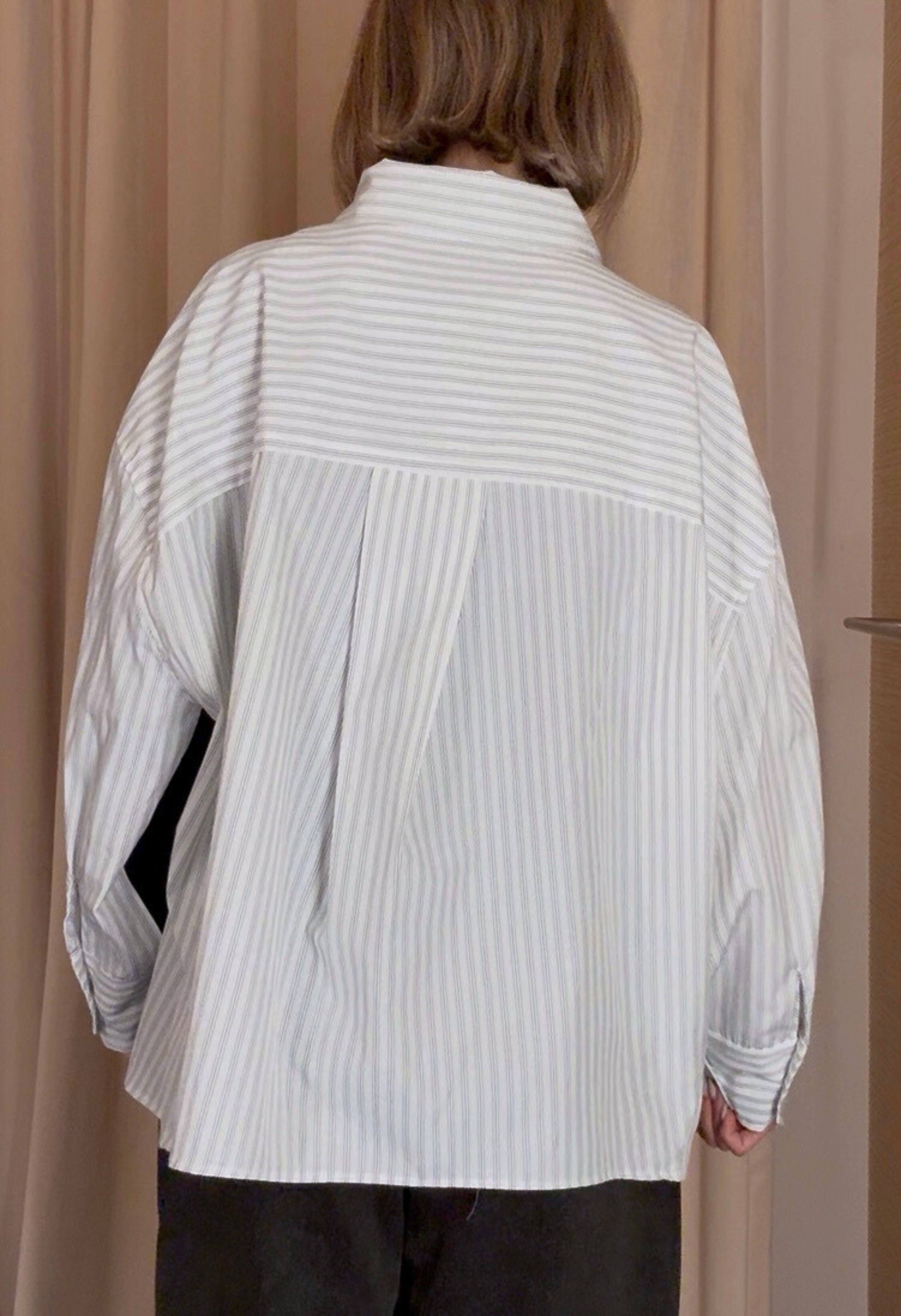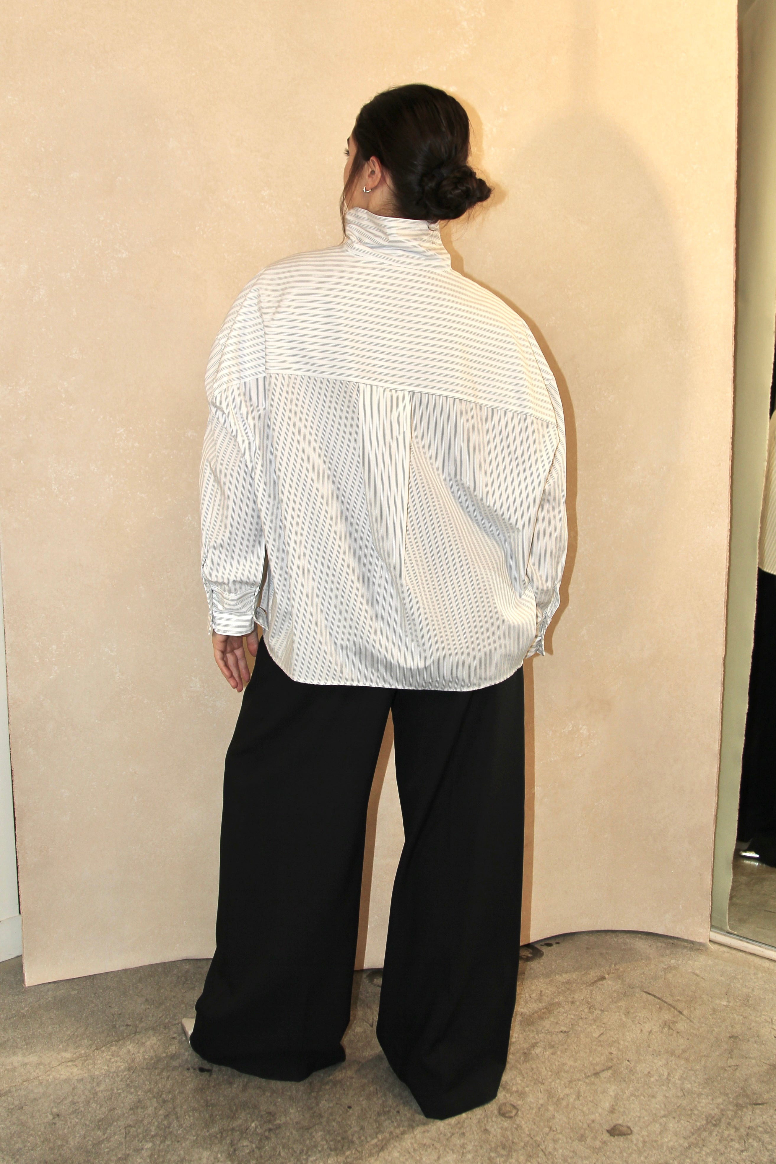 High Collar Button Down - Dark Grey Striped