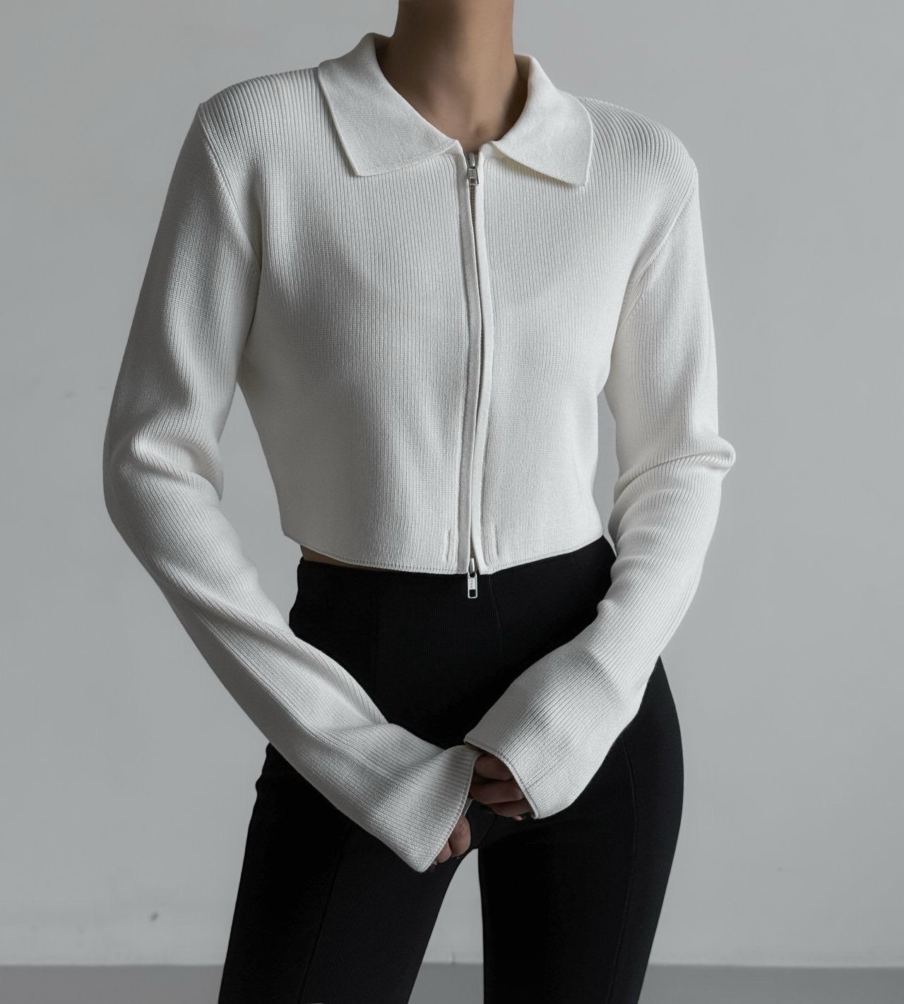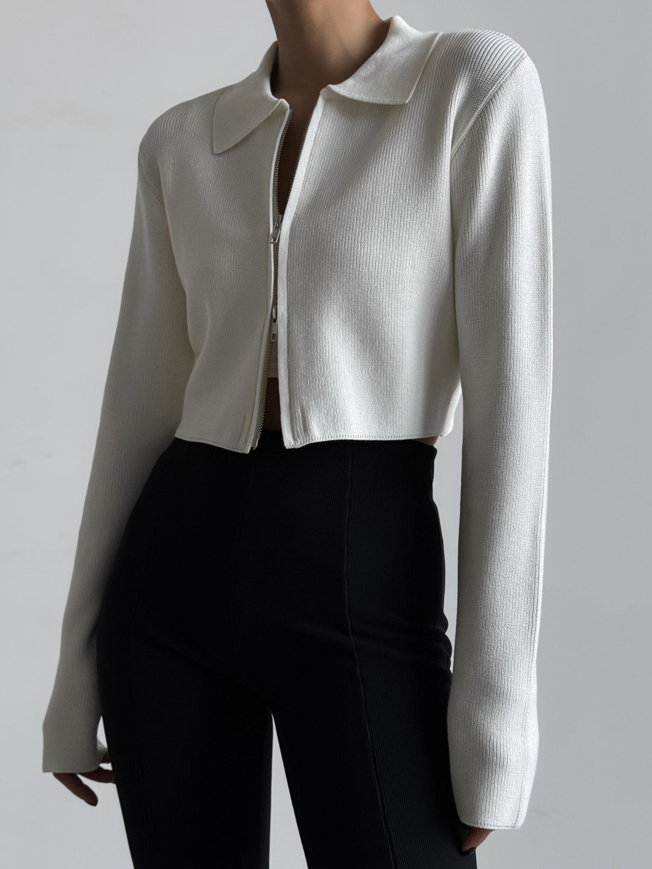 Cropped Knit Cardigan in Snow