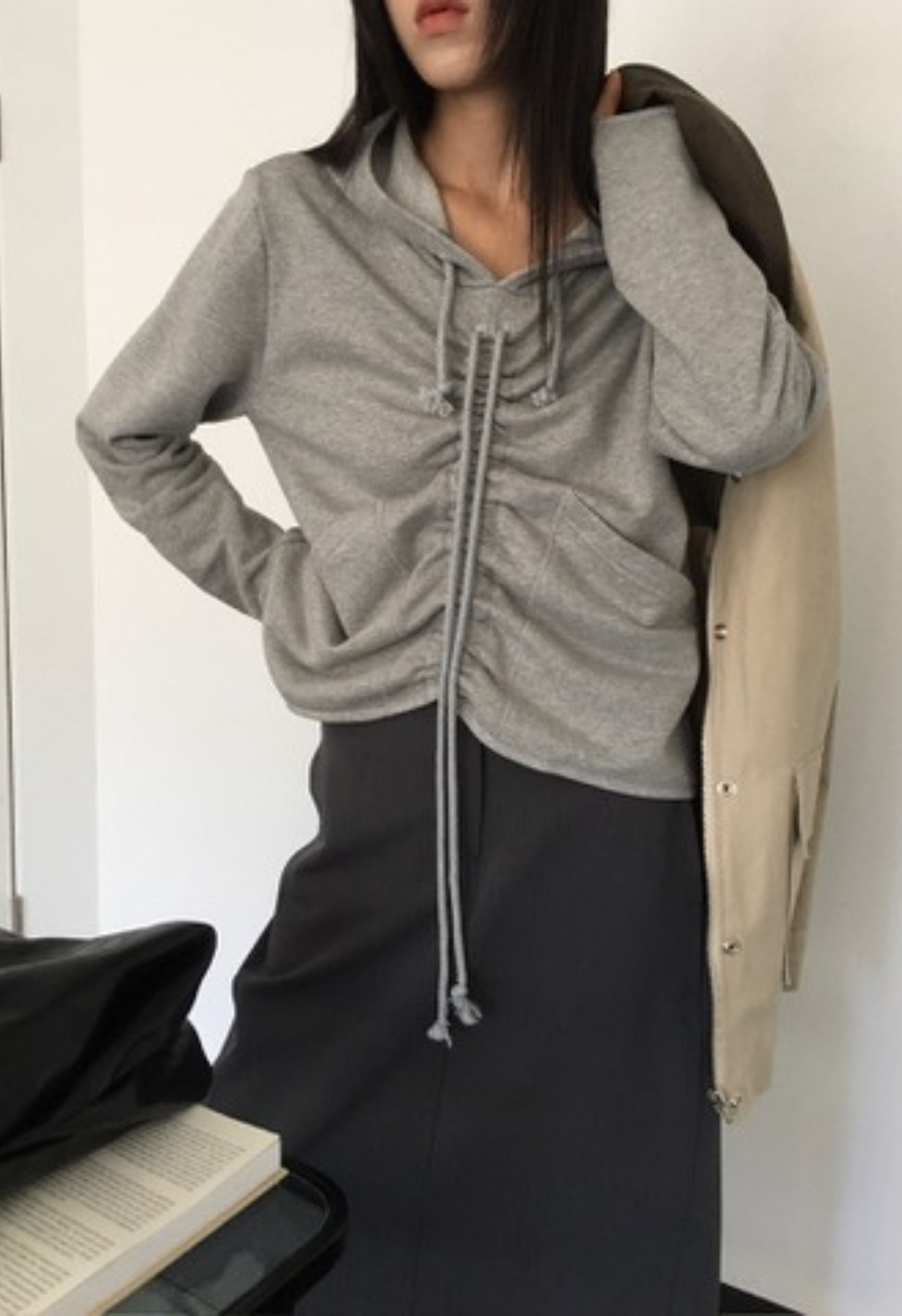 Ruched Grey Hoodie